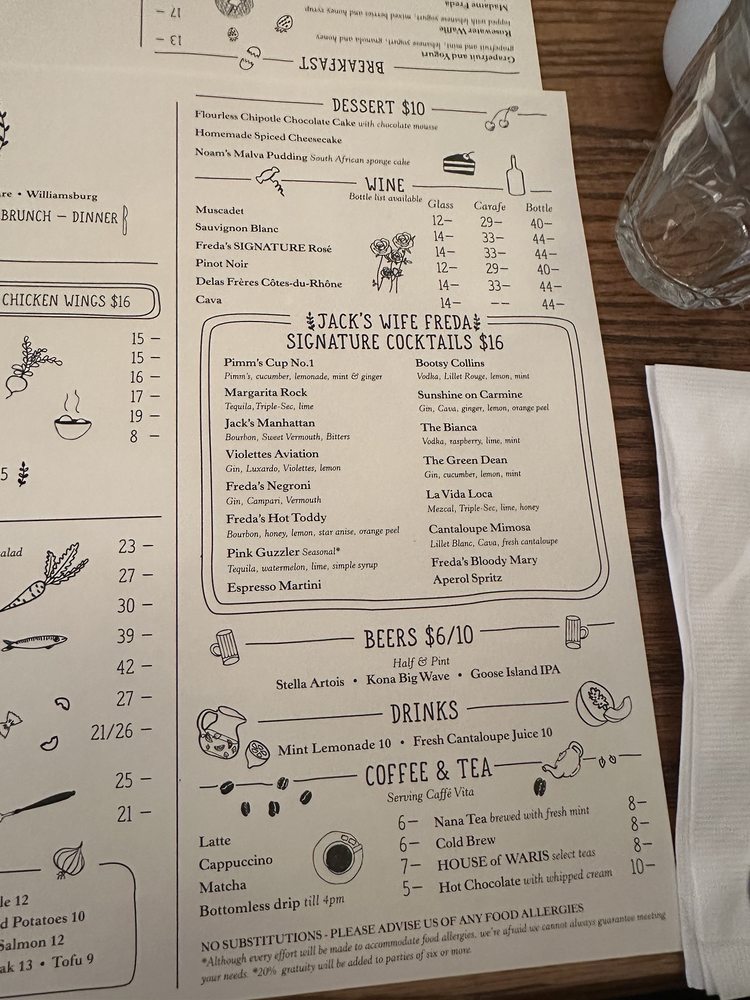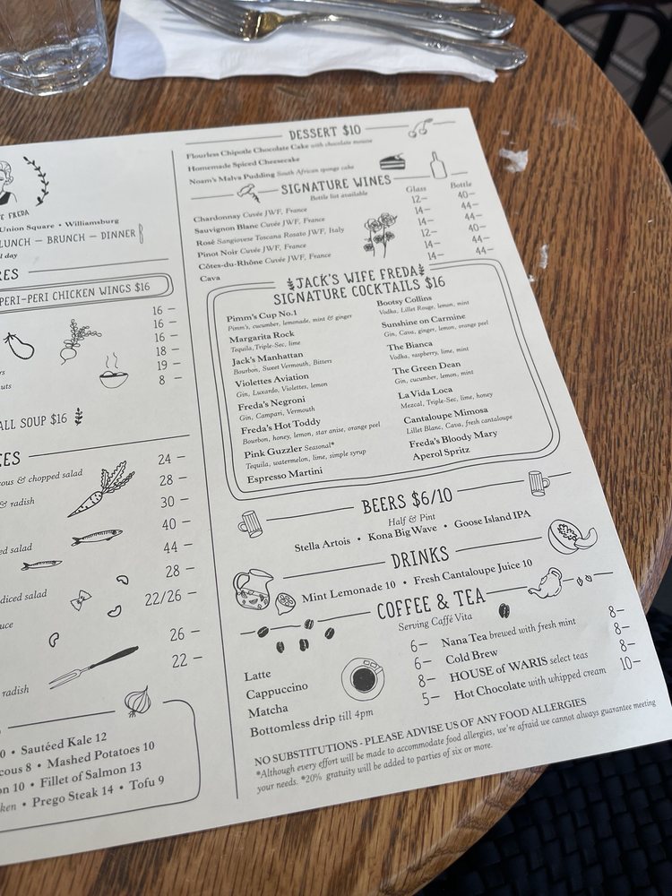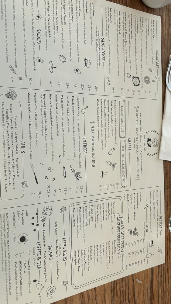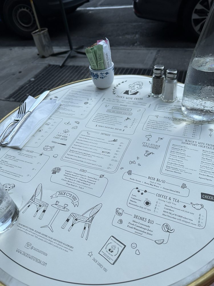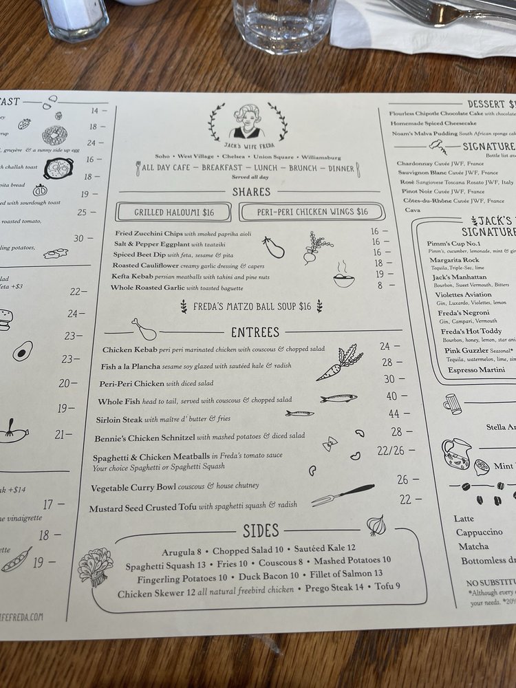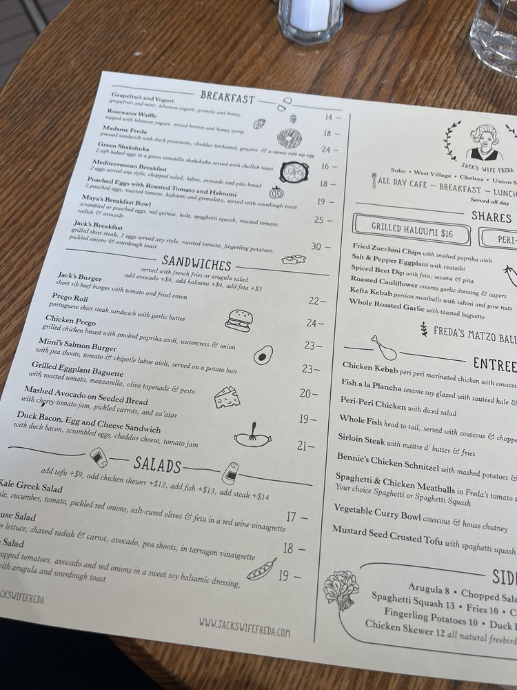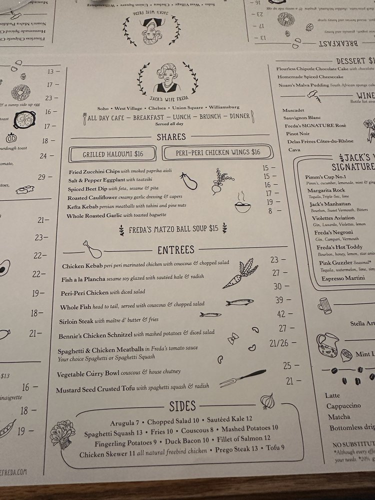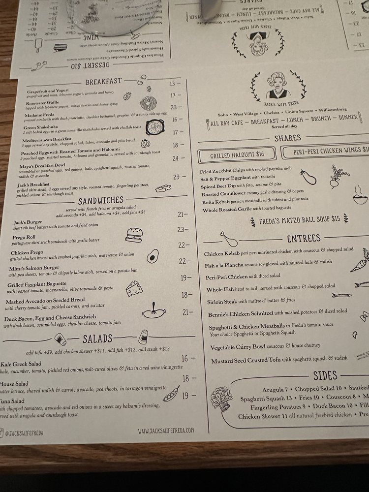 Jack's Wife Freda, a vibrant New American-Mediterranean eatery in New York, offers a diverse menu with vegan and vegetarian options. The cozy ambiance, complete with gender-neutral restrooms, welcomes all diners. The menu boasts unique dishes like Grilled Haloumi, Freda's Fried Fish Balls, and Kefta Kebab. Customers rave about the quick service and generous portions, though the lively atmosphere can get noisy during peak hours. The outdoor seating area provides a French patio dining vibe, perfect for sunny days. Standout dishes include the Vegetable Curry Bowl and Maya's Breakfast Bowl, both praised for their flavors and portion sizes. Jack's Wife Freda is a must-visit spot for a bustling brunch or lunch experience with a Mediterranean twist.